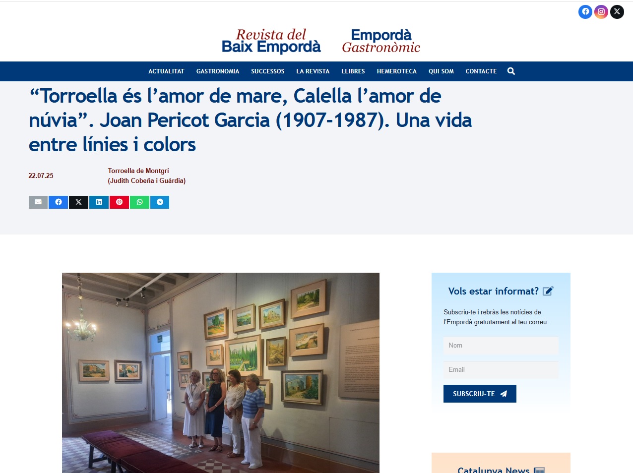 “Torroella és l’amor de mare, Calella l’amor de núvia”. Joan Pericot Garcia (1907-1987). Una vida entre línies i colors